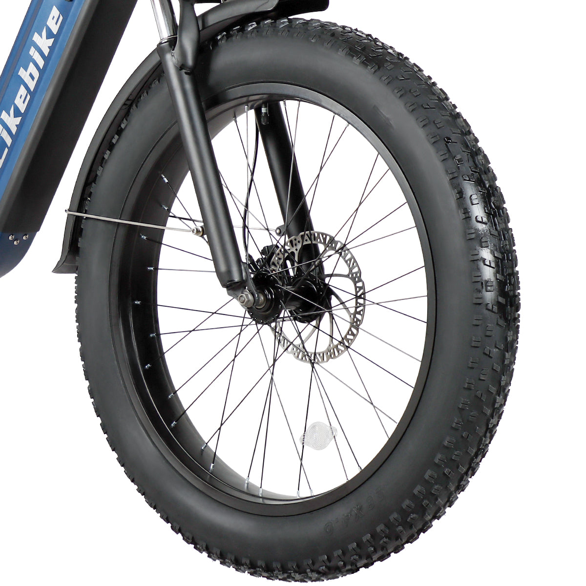 26"X4" fat tires with lockable front suspension and rear shock absorbs more bumps. Let you enjoy a comfortable ride. Riders can adjust the switch and hardness according to the terrain. Easy to cope with all kinds of terrain.
