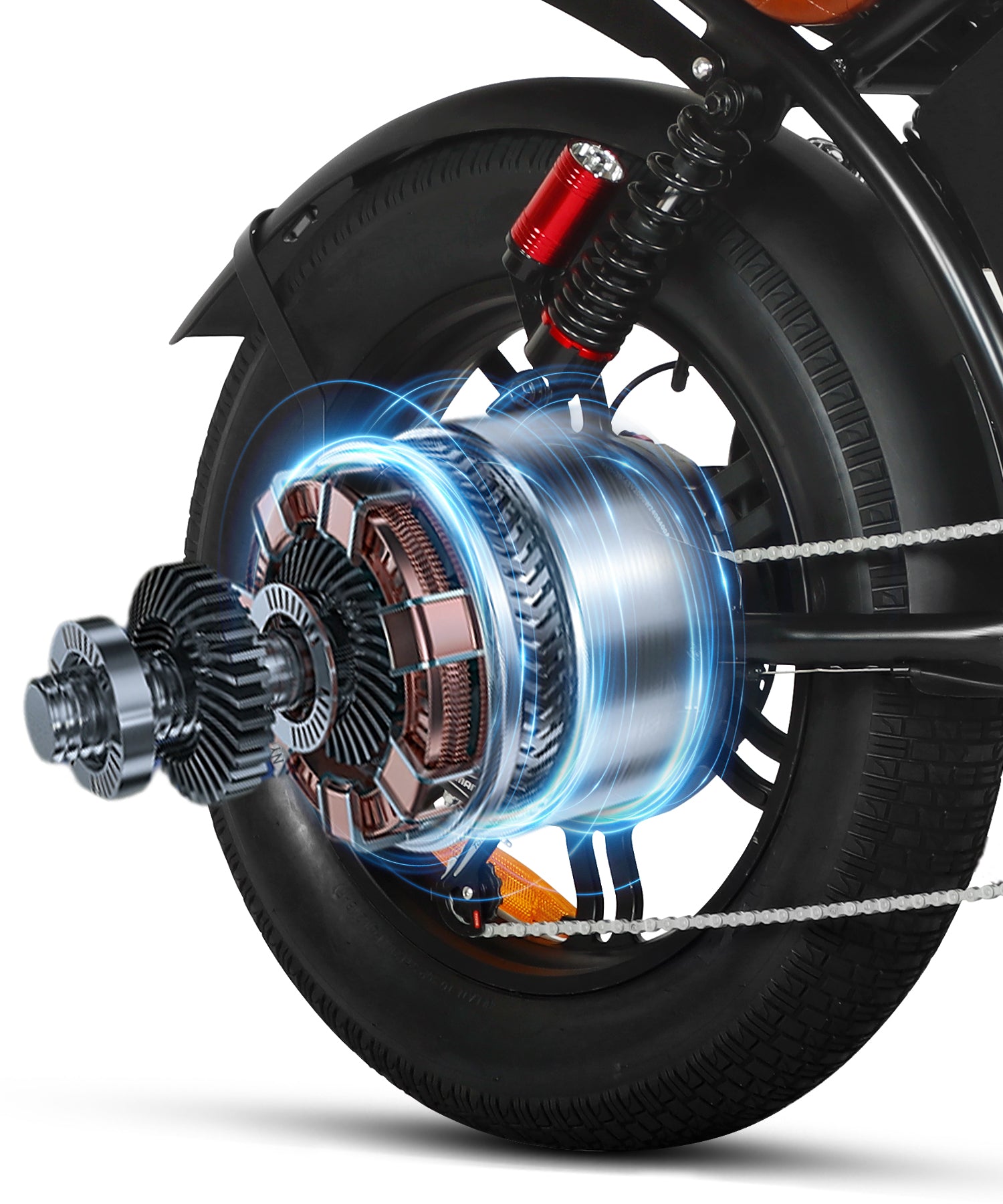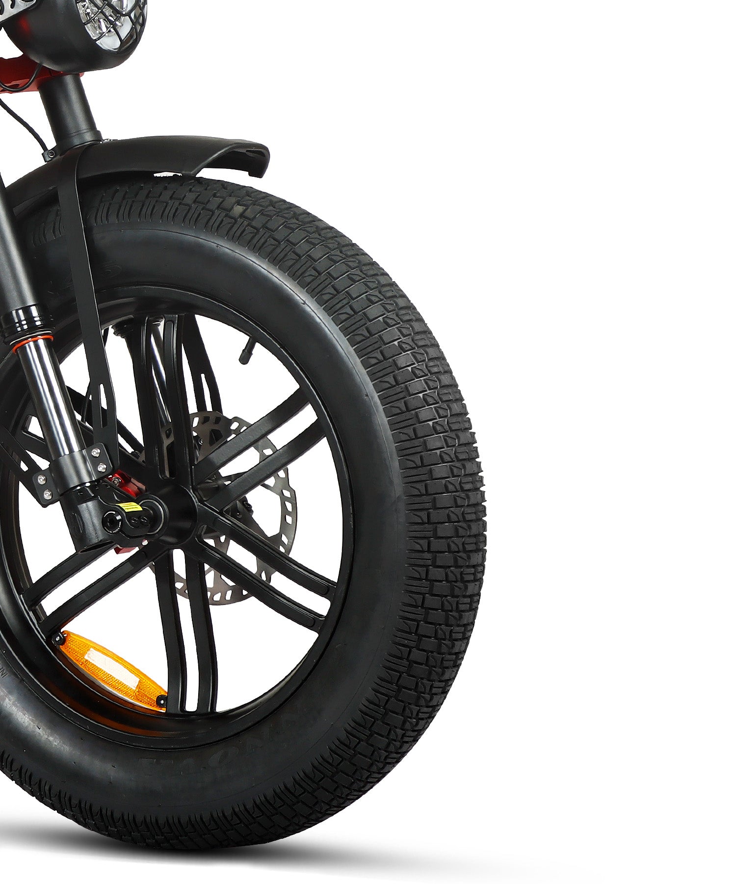 The lightweight yet durable aluminum wheel enhances stability and handling, offering better structural integrity and corrosion resistance. Paired with larger fat tires, it provides excellent traction and a lower center of gravity, ensuring smooth rides on various terrains. Built for all-weather use with added puncture protection, this setup guarantees a safe, worry-free ride in any condition.