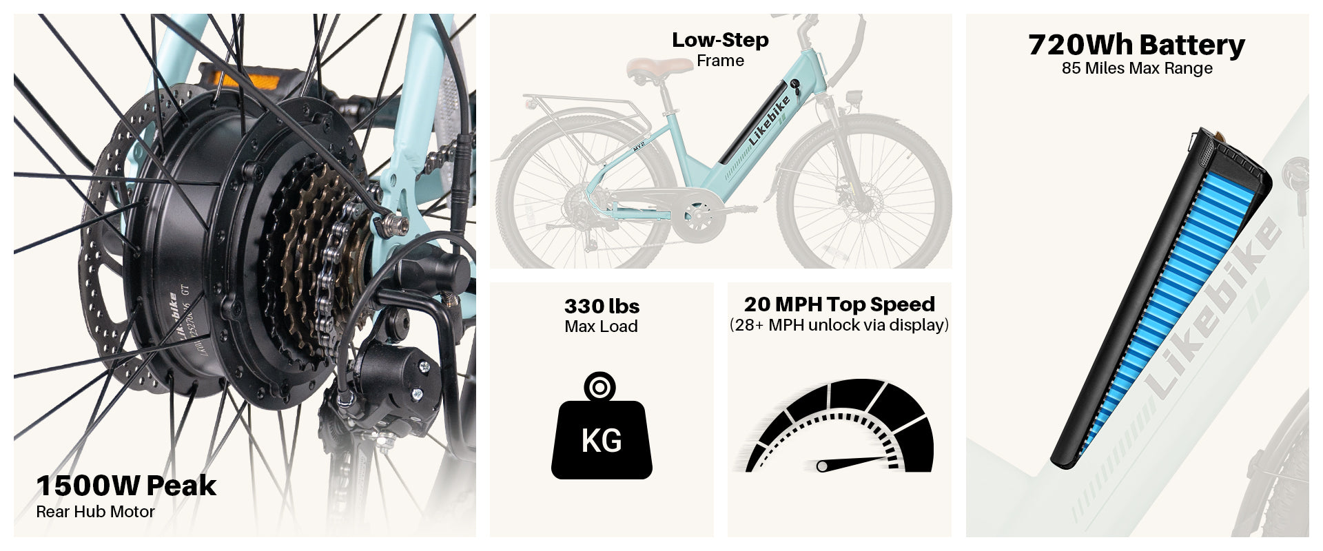 MY2 ebike features a powerful 500W motor (peak 1500W), delivering ample power for smooth and efficient rides in urban commuting.