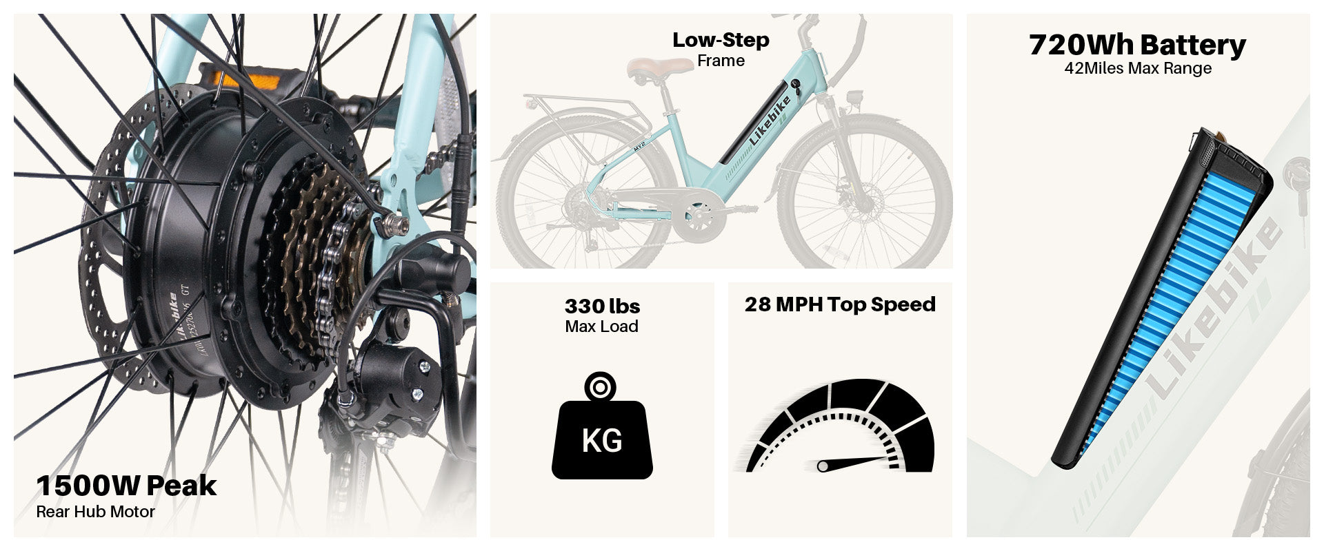 Long Range Ebike for Adults - 330 lbs Max Load, 1500W Motor
