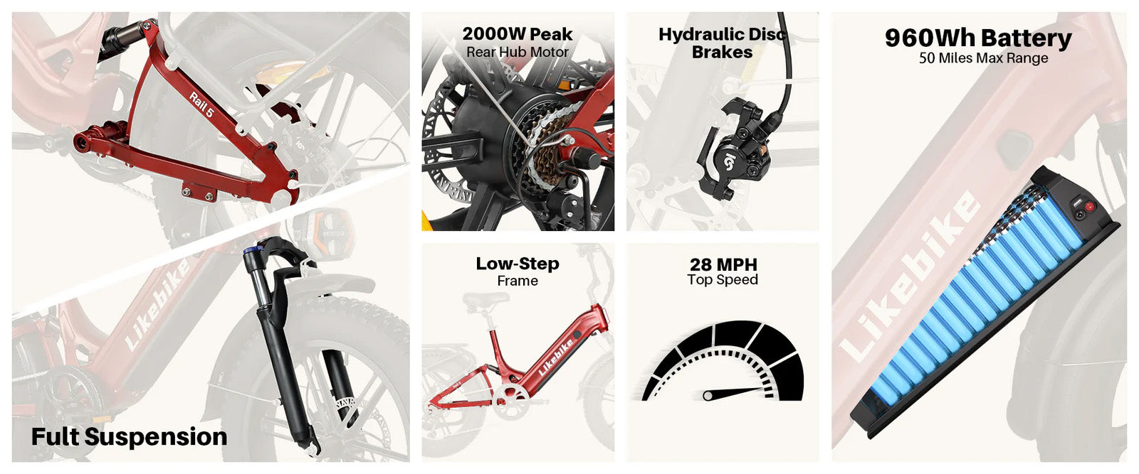 50 miles long range and fat tire electric bike with 20" x 4" fat tires.
